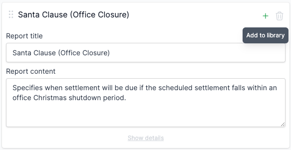The "Add to clause library" button appears when: