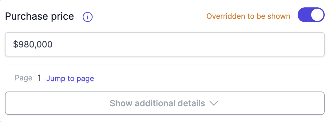 - If the purchase price is known, toggle the field on and enter the purchase price.