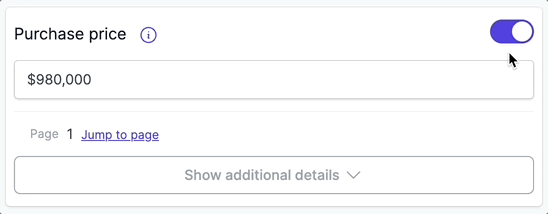 - If the purchase price is unknown or undecided, toggle the field off.