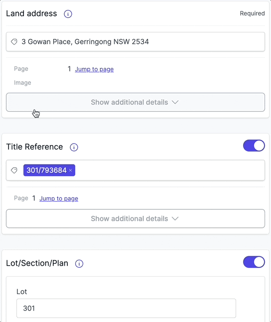 - Client reports: Page numbers appear in your reports, helping clients quickly locate specific information in the contract. This is especially useful for Special conditions and Dealings sections where specific clauses need to be reviewed.