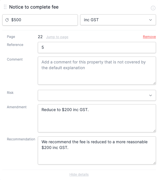 - Example: "We recommend the vendor reduce the interest rate for any delay in settlement to a more reasonable 8% pa"