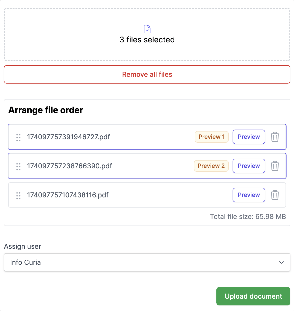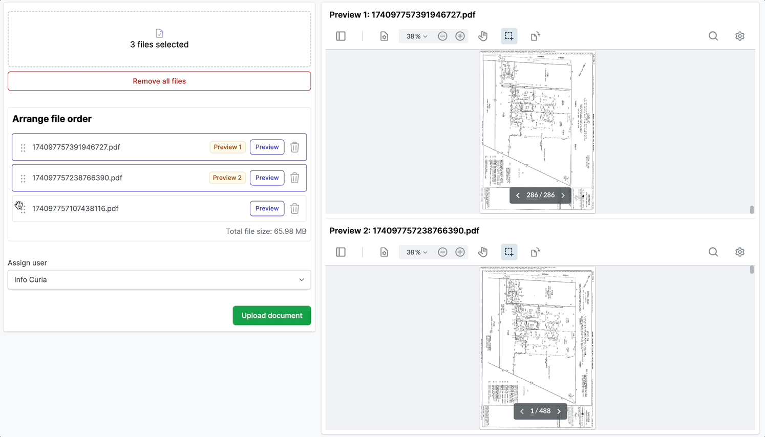 Use multi-file upload when you have received a contract that has been split into separate PDF files. This is useful when: