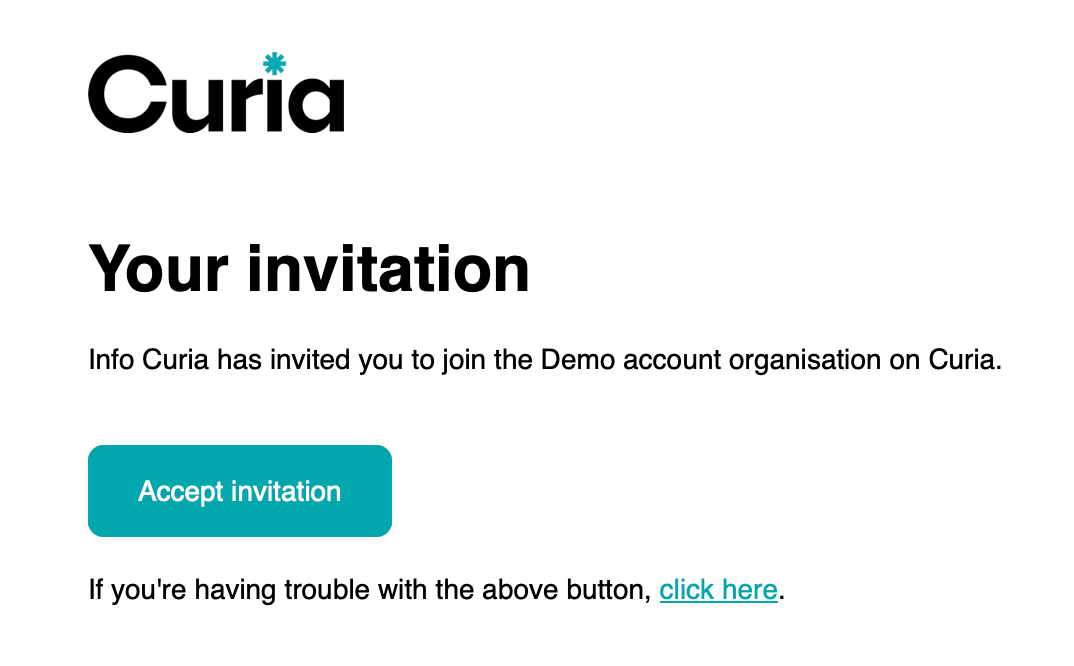 - The invited user will receive an email with steps to complete the invite process.