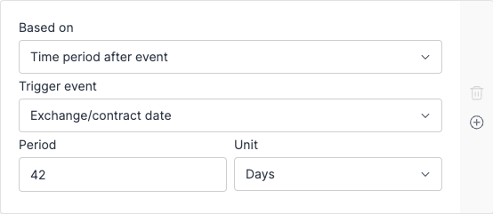 - Select "Exchange/contract date" as the trigger event